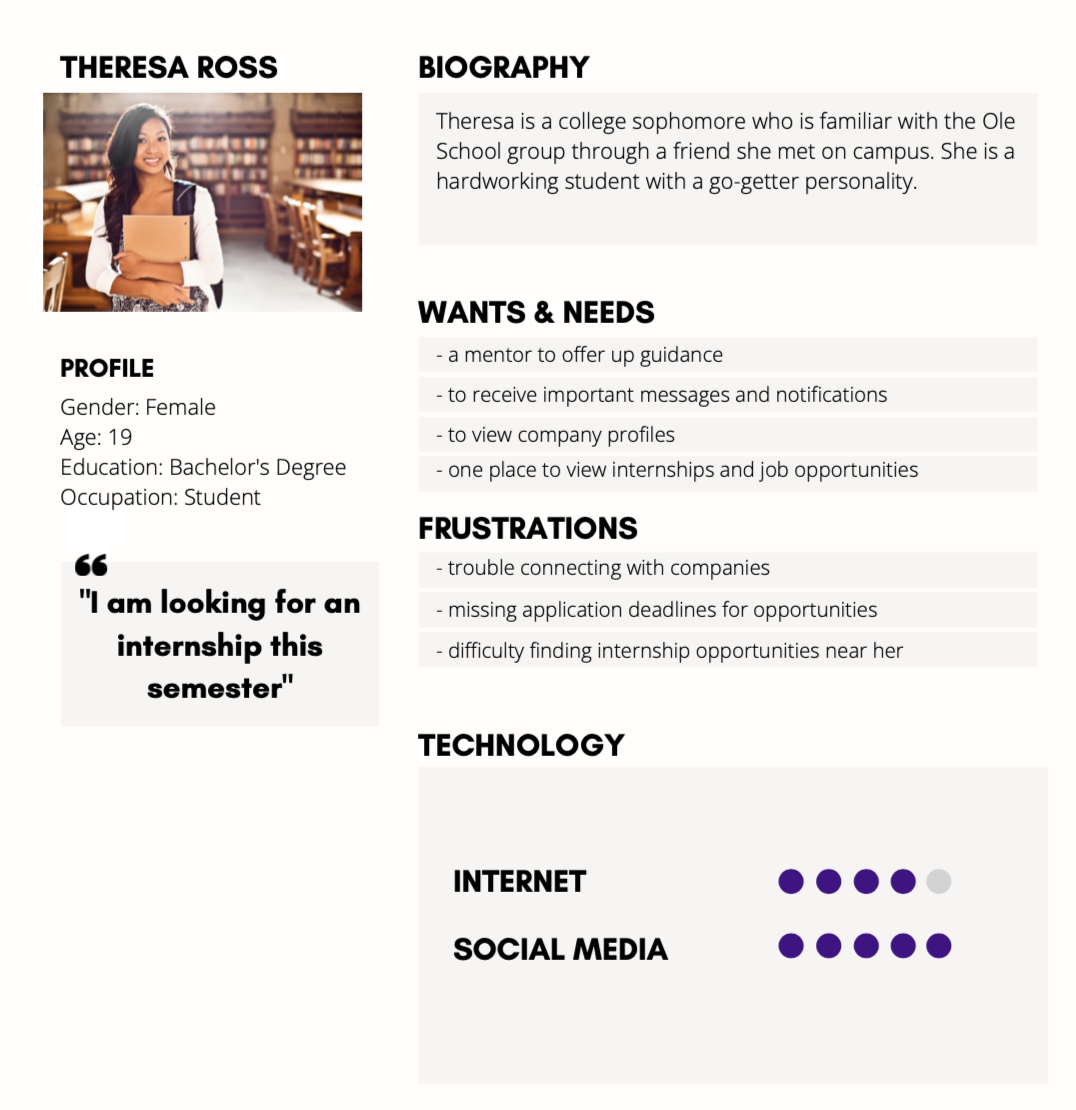 The challenge for this project was to collaborate with computer information systems students to create a system that connects to a database to connect students the Ole Schoolers work with to opportunities, mentors, and jobs. At the end of the semester the client chooses the best system to win.